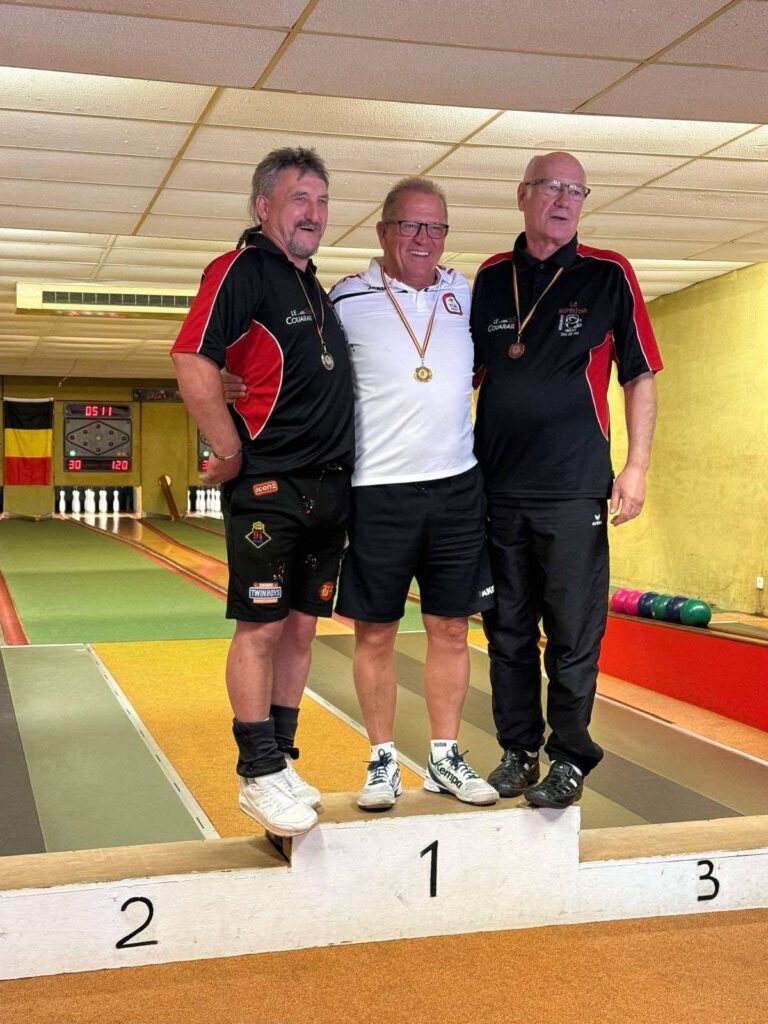 Am gestrigen Sonntag wurde in der Provinz Luxembourg das Finale der diesjährigen Belgischen Meisterschaft im Sportkegeln in 6 Einzeldisziplinen ausgetragen. Vom VDK hatten sich 5 Kegler nach zwei Vorläufen durchgesetzt. Morgens um 10 waren dann zuerst die Senioren B am Start. Hier belegte Franz Schrefler den 4. Platz, sein Klubkamerad vom KSK Eupen Raeren Herbert Kohnen holte sich Bronze. Sieger wurde Gerard Chenut vom FWQ vor Bob Knors vom KV ZUN. Bei den Senioren A dominierte Walter Bongard vom KSK Eupen Raeren, vor drei Lokalmatadoren vom QC Dampicourt. Er holte sich seinen insgesamt 6 Titel bei den Senioren A. Danach folgten die Damen, hier siegte Karin de Bel vom VKF. Daraufhin ging es über zur ersten Preisverteilung. Ein zufriedener VDK-Präsident überreichte die Medaillen, weil ja der Sieger aus dem VDK kam. Eine lustige Einlage war die Nationalhymne deren Text niemand verstehen konnte. Dann ging es weiter mit den Disziplin Herren B, welches eine Klubmeisterschaft vom QC Dampicourt gleichkam. Cedric Rezette ging hier als Sieger hervor und so kam für den VDK der nächste Höhepunkt bei den Junioren. Denn hier dominierte von Anfang ein enorm stark spielender Gregory Barth, der mit 817 Holz belgischer Meister wurde und den zweitpalzierten und Vorjahrssieger Mathias Beeldens vom VKF mit 70 Holz hinter sich ließ. Gregory wird auch im August an der U 24 WM in Herne teilnehmen. Zum Abschluss des Tages startete die Königsdisziplin Herren A. Vom VDK war Marcel Weinholz am Start, der am Ende sich die Bronzemedaille sicherte, durch eine fulminante letzte Bahn. Belgischer Meister und erfolgreicher Titelverteidiger, wurde Christopher Authelet (FWQ), der für den bundesligiste SKV Trier kegelt. Bei der zweiten Siegerehrung wurden Medaillen überreicht von der lokalen Bürgermeisterin aus Rouvruy. VDK-Präsident Jonny Deliege, der sich über 2-mal Gold und 2-mal Bronze für den VDK freuen durfte, war auch in Begleitung vom NBS-Sportwart Jo Volders, die auch beide im Namen der NBS mit den Verantwortlichen des QC Dampicourt Infos einholten und gaben, für den nächsten World Cup, welcher im März 2026 dort ausgeführt wird. Am Ende war dann noch zu erwähnen das bei der zweiten Siegerehrung dann man die richtige belgische Nationalhymne gespielt wurde.